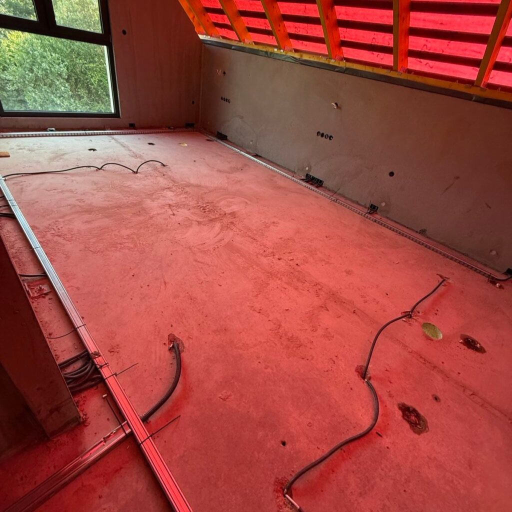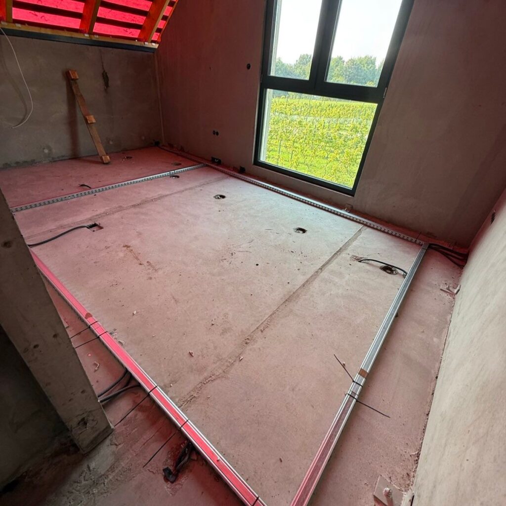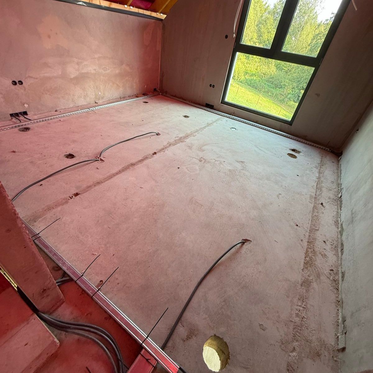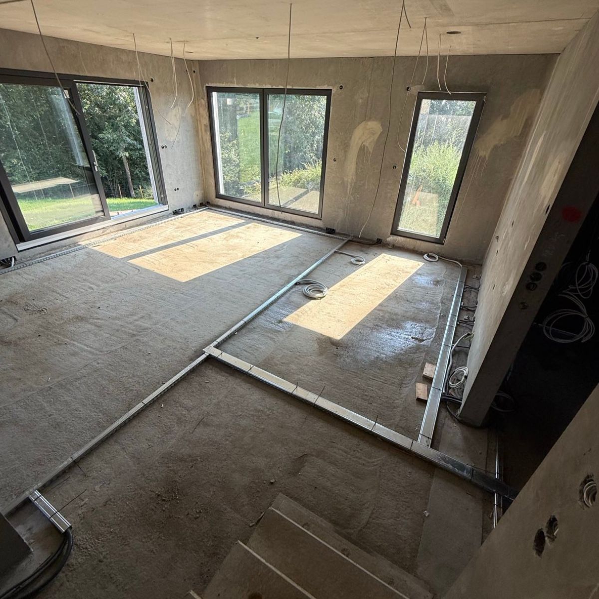 Inwestor potrzebował kompletnej instalacji w domu modułowym, wykonanej sprawnie i w jednym podejściu, z przygotowaniem pod automatykę i przyszłe systemy. Kluczowe było rozprowadzenie zasilania i sterowania pod wszystkie najważniejsze funkcje domu (rolety, ogrzewanie, kamery), wykonanie instalacji internetowej i TV oraz przygotowanie przewodów pod fotowoltaikę, tak aby uniknąć przeróbek po wykończeniu.