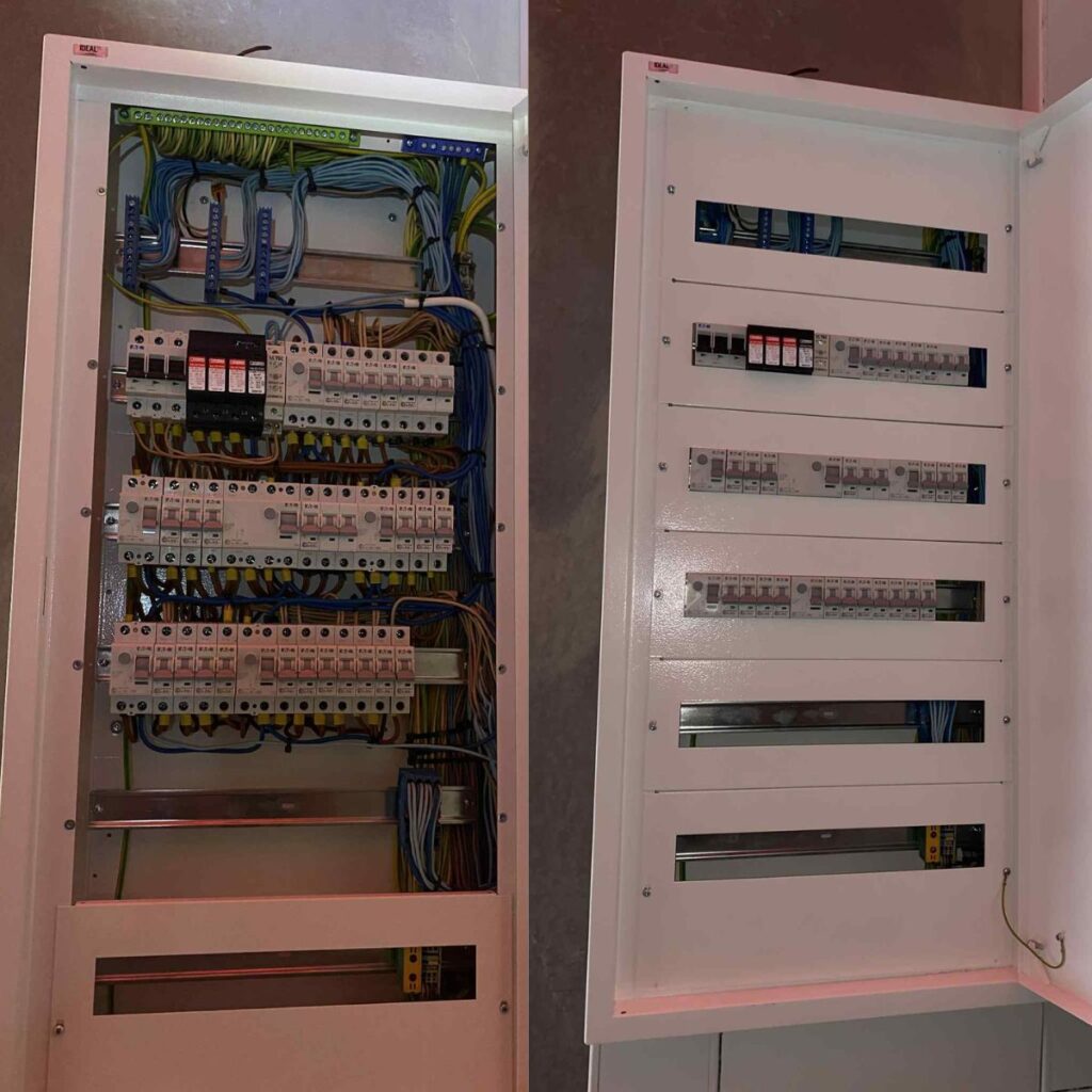 Inwestor potrzebował sprawnego wykonania instalacji elektrycznej w domu modułowym, gdzie kluczowe znaczenie miał czas realizacji i dokładna koordynacja prac. Naszym zadaniem było wejście na gotowy obiekt modułowy i szybkie, precyzyjne rozprowadzenie całej instalacji elektrycznej oraz przygotowanie jej do odbioru technicznego, bez ryzyka opóźnień w harmonogramie inwestycji.